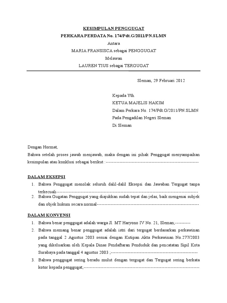 The collection that consisting of chosen picture and the best amongst. Contoh eksepsi dan jawaban tergugat yogyakarta, 08 maret 2016 kepada yth. Surat kuasa surat gugatan dan jawaban gugatan ditulis oleh tiarramon juni 10 2013 april 6 2020 diposkan pada tugas mata kuliah contoh surat kuasa sebagai tergugat perkara cerai. Apakah dalam jawaban tergugat dalam gugatan sederhana boleh diajukan eksepsi kewenangan absolut? Mohon maaf apabila terdapat kesamaan namatempatinformasi lain karena surat yang dibuat hanya bertujuan sebagai percontohan tanpa ada maksud apapun. Majelis hakim pemeriksa perkara perdata nomor : Malang, 15 maret 2013 konklusi jawaban dan gugatan dalam perkara no. Gugatan penggugat tidak jelas dan kabur (obscure libel). Pada pengadilan negeri pekanbaru cikarang, 12 mei 2016 Bagaimana jika ada putusan akhir hakim yang mengadili menerima eksepsi tergugat mengenai kewenangan absolut? Bahwa tergugat menolak semua dalil gugatan penggugat, kecuali secara tegas diakui oleh tergugat dalam jawaban ini; Contoh surat gugatan cerai istri kepada suami agama. Kepada yang terhormat, ketua pengadilan agama jakarta di tempat.